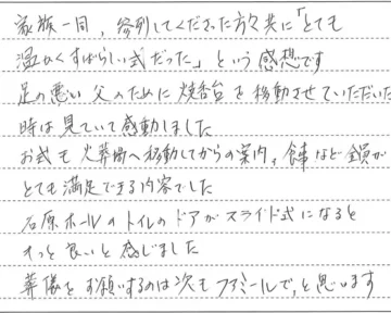 home地域から探す 埼玉県行田市・熊谷市に10の式場 もしもの時に役立つ資料を郵送します! 無料資料請求 葬儀・供養・お墓のことなら遠慮なくご相談ください 0120-0983-05通話 無料 埼玉県行田市・熊谷市に10の式場 行田市 行田セレモニー会館 行田市持田 (持田駅 徒歩7分) ファミール行田〔駅前ハウス〕 行田市栄町 (行田市駅 北口前) ファミール行田〔あらまちルーム〕 行田市行田 (行田市駅 徒歩6分) 行田市斎場 行田市佐間 (埼玉古墳公園 入口) 熊谷市 ファミール熊谷〔石原ホール〕 熊谷市石原(石原駅 徒歩9分) ファミール熊谷〔家族ルーム〕 熊谷市原島 (石原駅 徒歩20分) メモリアル彩雲 熊谷市円光 (熊谷駅よりバス20分) 東光寺〔曹洞宗〕 熊谷市上之(熊谷駅 徒歩30分) 玉井寺〔真言宗智山派〕 熊谷市玉井(籠原駅 徒歩30分) 熊谷まどかホール 熊谷市円光(熊谷駅 徒歩33分) 累計10,000件の実績とお客様との絆 ご縁のあった方々からのあたたかいご感想をご紹介します 2025-12-30 (火) 行田市葬儀 お客様の声「ファミール行田〔駅前ハウス〕」 【T様より】家族一同、参列してくださった方々共に「とても温かくすばらしい式だった」という感想です。足の悪い父のために焼香台を移動… 2025-12-29 (月) 熊谷市葬儀 お客様の声「火葬式」 【K様より】とても親切、丁ねいにご対応していただきました。ありがとうございました。 ■施行させていただいた葬儀事例… 2025-12-26 (金) 行田市葬儀 お客様の声「ファミール行田〔行田市斎場〕」 【U様より】母が亡くなった悲しみと、初めての葬儀で何も分からず不安な中、亡くなった母にも、私共遺族にも、スタッフの皆様が、とても丁… 2025-12-23 (火) 行田市葬儀 お客様の声「ファミール行田〔行田市斎場〕」 【O様より】・葬儀の司会者は、数分の聞き取りにもかかわらず、娘として、父親の姿が思い出せるスピーチで(内容)感動しました。・フ… 2025-12-19 (金) 行田市葬儀 お客様の声「ファミール行田〔行田市斎場〕」 【M様より】担当者の方が一生懸命取り組んで下さり助かりました。変更や追加もあったのですが気持ち良く受け入れて下さいました。お… 2025-12-17 (水) 行田市葬儀 お客様の声「ファミール行田〔行田市斎場〕」 【H様より】自宅の返礼品を速かに届けて頂いたので、弔問に来て下さった方々に対応できました。会式も滞りなく進み、故人と別れがきちん… 実績と絆 一覧 ファミール イベント情報 全て 行田市 熊谷市 2025-12-30 (火) 行田市葬儀場「お葬式とお墓の相談会」1.21開催! ファミール行田・駅前ハウスで1月21日(水)相談会を開催します!事前に相談して、「総額」でいくらかかるのか、確認しておきましょう!… 2025-12-30 (火) 熊谷葬儀場『石原ホール』お葬式とお墓の相談会・1/16開催! ファミール熊谷『石原ホール』でお葬式とお墓の相談会1/16開催!新しい式場で相談会を開催します。「小さくて、あたたかいお葬式。」… 2025-12-23 (火) 年末年始 営業時間のお知らせ 行田セレモニーグループのファミールは、365日24時間対応しています。年末年始、家族がお亡くなりになってしまっても、スタッフが… 2025-12-11 (木) 熊谷葬儀場『石原ホール』お葬式とお墓の相談会・12/18開催! ファミール熊谷『石原ホール』でお葬式とお墓の相談会12/18開催!新しい式場で相談会を開催します。「小さくて、あたたかいお葬式。… 2025-12-01 (月) 行田市葬儀場「お葬式とお墓の相談会」12.12開催! ファミール行田・駅前ハウスで12月12日(金)相談会を開催します!事前に相談して、「総額」でいくらかかるのか、確認しておきましょう… 2025-11-28 (金) ファミールのお花の定期便サービス・月命日にお花を自宅へお届けします! 『ファミールのお花の定期便サービス』/行田市・熊谷市・鴻巣市内『お供え花を買いにいくのが難しい』『実家の仏壇にお供え花を贈り届け… 2025-11-26 (水) 行田葬儀場で好評の『野菜直売会 』を11.30に開催! 行田と熊谷葬儀場で29日・30日に野菜直売会を開催!恒例となっている名物「友引野菜」直売会が開催されます!地元熊谷の採りたての新… 2025-11-26 (水) 熊谷葬儀場で好評の『野菜直売会 』を11.29に開催! 熊谷と行田葬儀場で29日・30日に野菜直売会を開催!恒例となっている名物「友引野菜」直売会が開催されます!地元熊谷の採りたての新… 2025-11-25 (火) 熊谷葬儀場『家族ルーム』お葬式とお墓の相談会・12/6開催! ファミール熊谷『家族ルーム』でお葬式とお墓の相談会12月6日開催!「本当の家族葬を。」親しかった人が集い、思い出話を語り、故人の… 2025-11-13 (木) 行田市葬儀場「お葬式とお墓の相談会」11.24開催! ファミール行田・駅前ハウスで11月24日(月・祝)相談会を開催します!事前に相談して、「総額」でいくらかかるのか、確認しておきまし… 2025-11-10 (月) 行田市葬儀場で「年末人形供養祭・お財布供養 」開催します! 熊谷と行田葬儀場で年末人形供養祭・お財布供養同時開催!開催概要と料金について📅開催日時・場所熊谷会場:ファミール熊谷[家族… 2025-11-10 (月) 熊谷葬儀場で「年