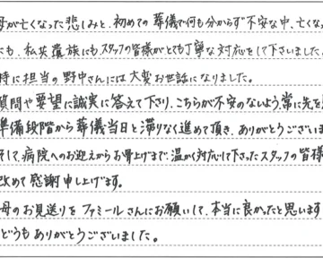 21時には施錠されますので、家族の付添いはできません。最後の夜はそばにいてあげたい、親族を泊めてあげたいという方は、ファミールの式場をご利用下さい。
