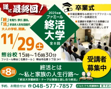 行田市で終活の正しい情報と知識を学ぶ!「第7回・ファミール終活大学」10月25日(土)開講! 「終」を知り、学び、語る…