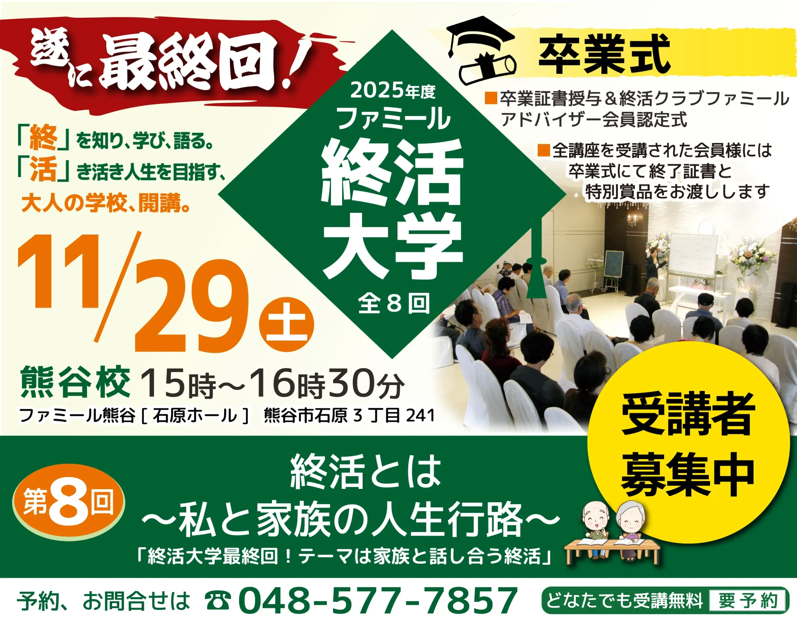 11.29「ファミール終活大学」が遂に最終回&卒業式!