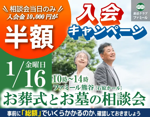熊谷葬儀場『石原ホール』お葬式とお墓の相談会・1/16開催!