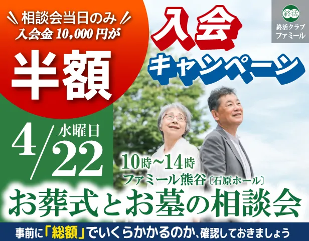 熊谷葬儀場『石原ホール』お葬式とお墓の相談会・4/22開催!