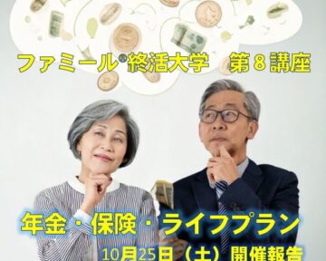 「終」を知り、学び、語る。「活」き活き人生を目指す大人の学校10月25日(土)ファミール終活大学第7講座『年金・保険・ライフプラ…
