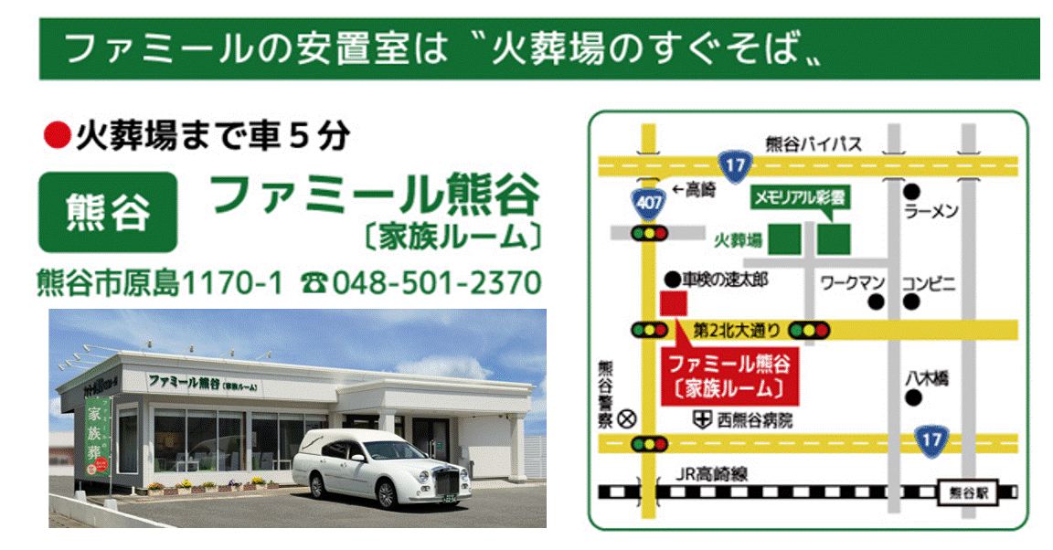 ・ファミール熊谷〔家族ルーム〕 火葬場まで5分! 24時間出入り自由!【公式サイト】