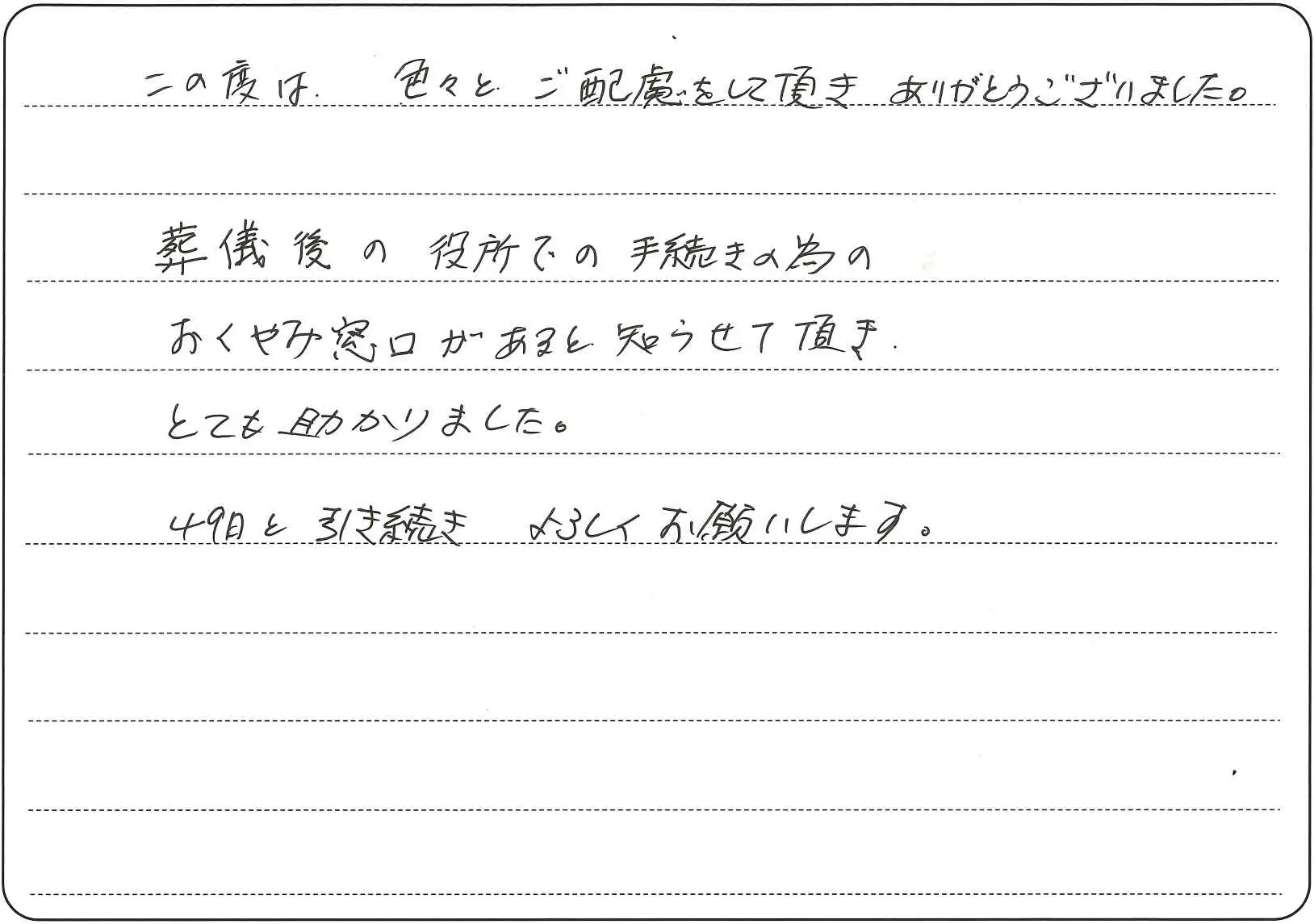 行田市葬儀 お客様の声「ファミール行田〔駅前ハウス〕」