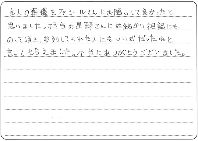 行田市葬儀 お客様の声「ファミール行田〔行田市斎場〕」