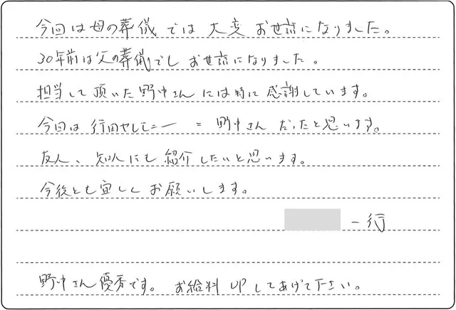 お母様のお見送りをお任せいただき、本当にありがとうございました。