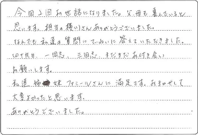今回2回お世話になりました。父母も喜んでいると思います。