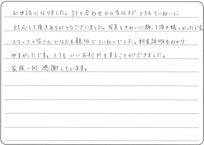 お世話になりました。打ち合わせから当日までとてもていねいに