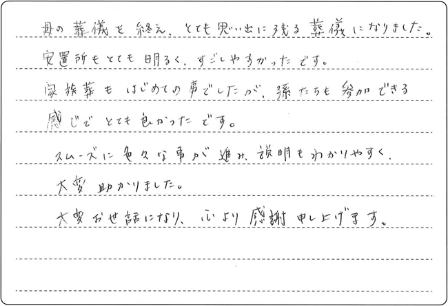 家族葬もはじめての事でしたが、孫たちも参加できる