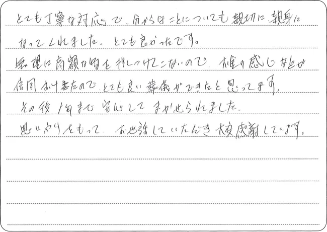 信用おけたので、とても良い葬儀ができたと思ってます。
