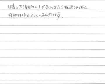 【T様より】先日は、お世話になりました。はじめての事で、何もわからず、ていねいな説明でとても良く解りました。ありがとうございま…