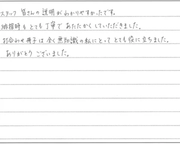 【T様より】先日は、お世話になりました。はじめての事で、何もわからず、ていねいな説明でとても良く解りました。ありがとうございま…